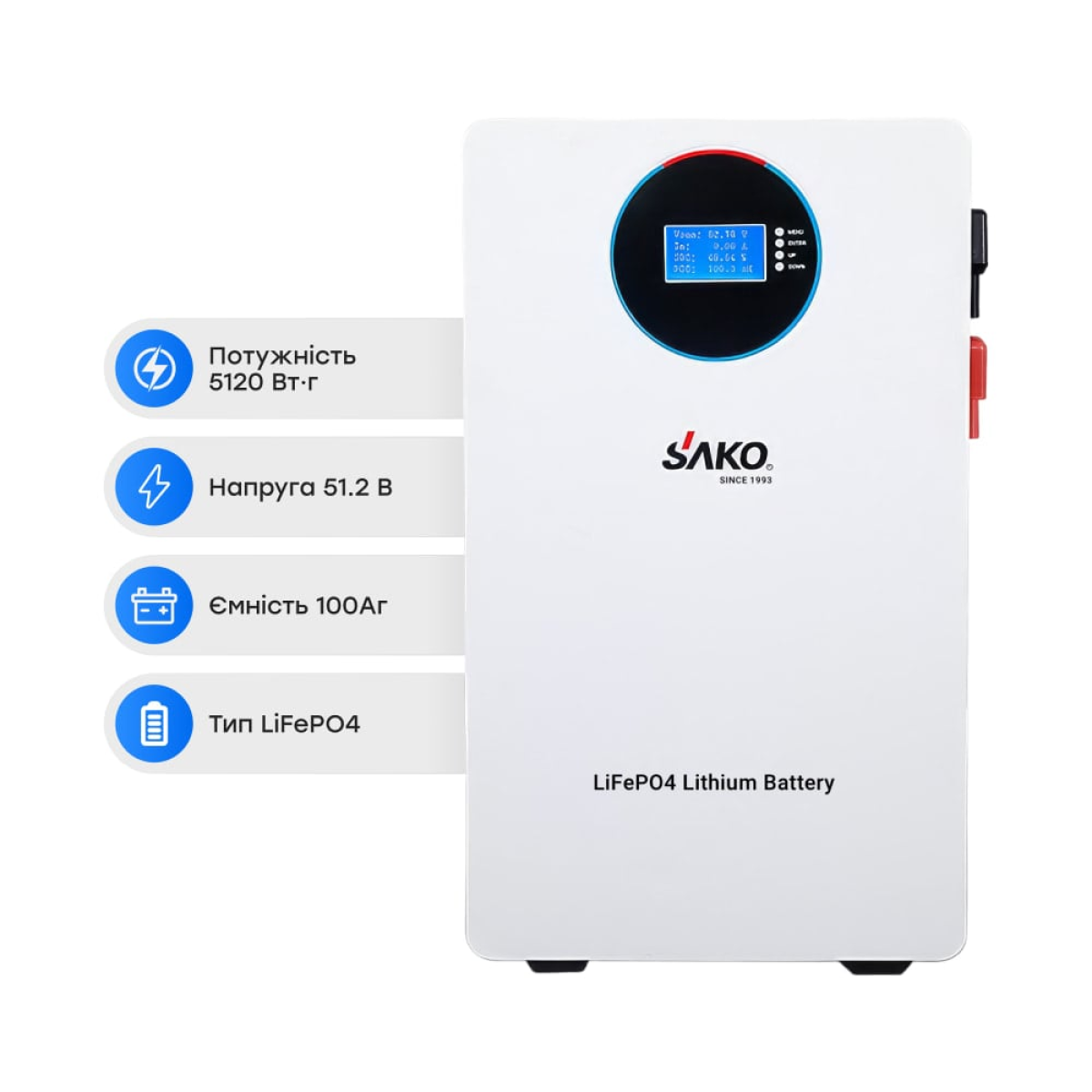 Акумуляторна батарея літій-залізо-фосфатна 100Аг 51.2В 5120Втг Sako SK-51.2V100Ah Li-Sun series LiFePo4 настінний монтаж