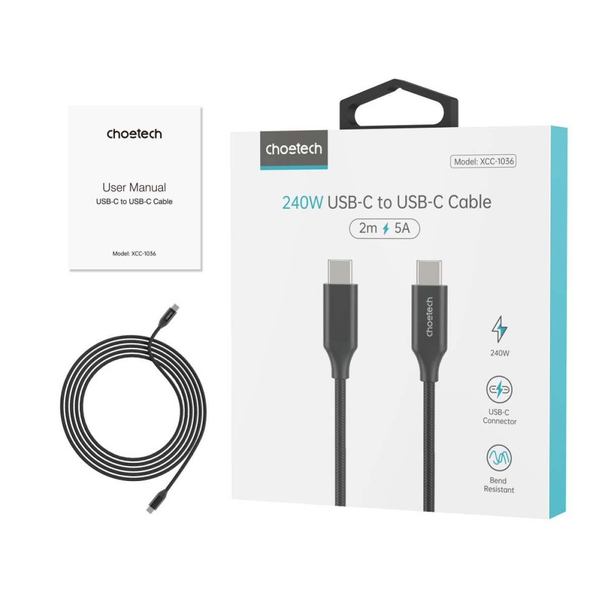 Кабель Choetech ХСС-1036 Black USB-C to USB-C PD3.1 240W 2m